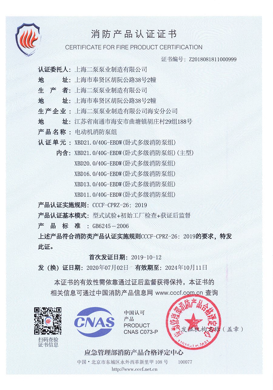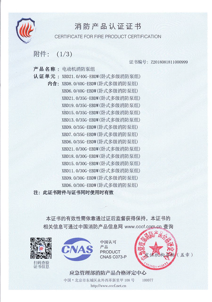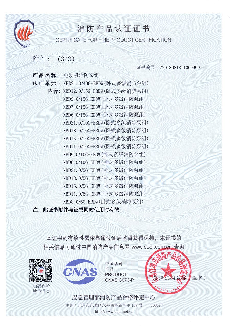 臥式多級EBDW-消防產(chǎn)品認(rèn)證證書
