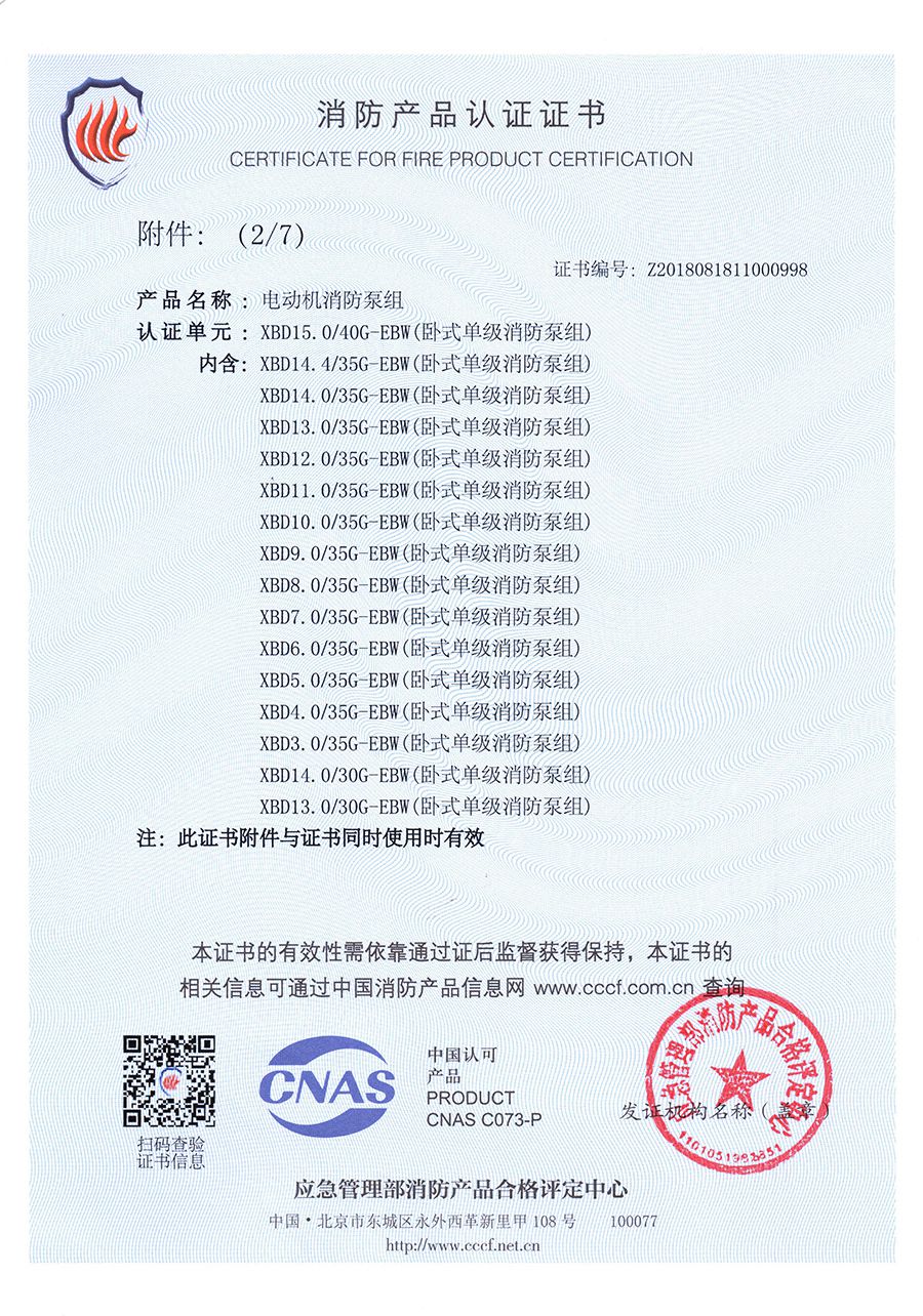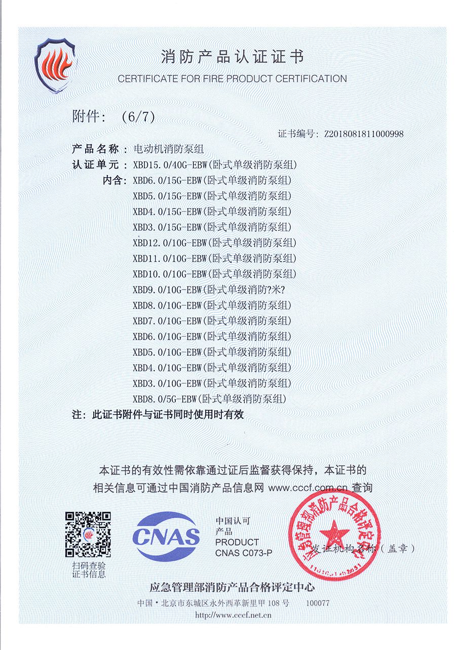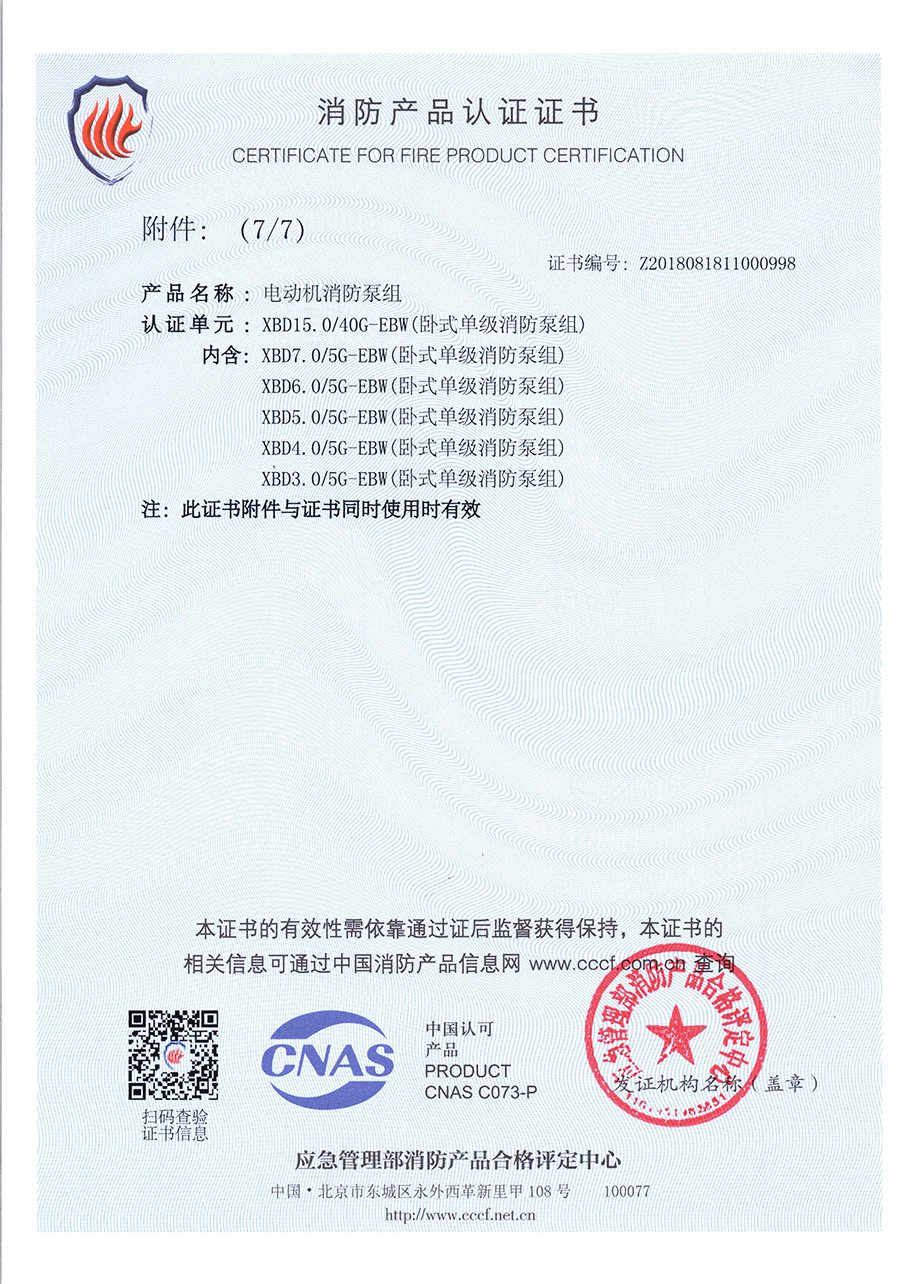 臥式單級(jí)EBW-消防產(chǎn)品認(rèn)證證書(shū)
