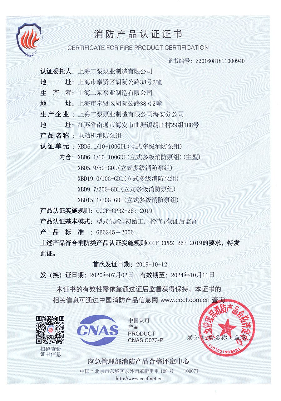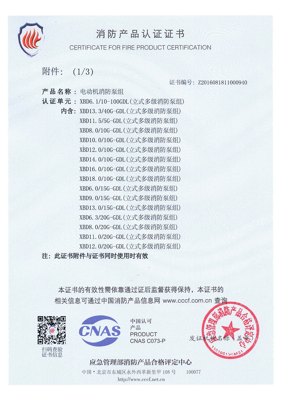 立式多級(jí)GDL-消防產(chǎn)品認(rèn)證證書(shū)