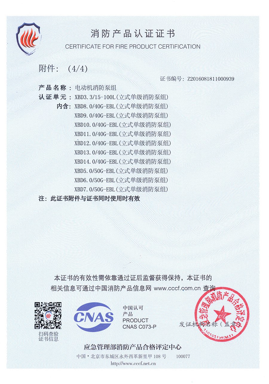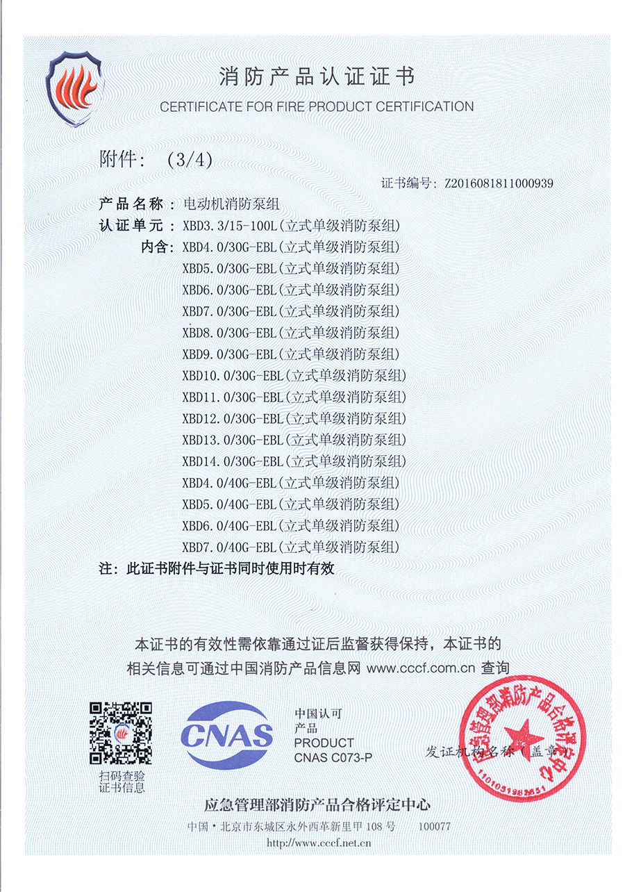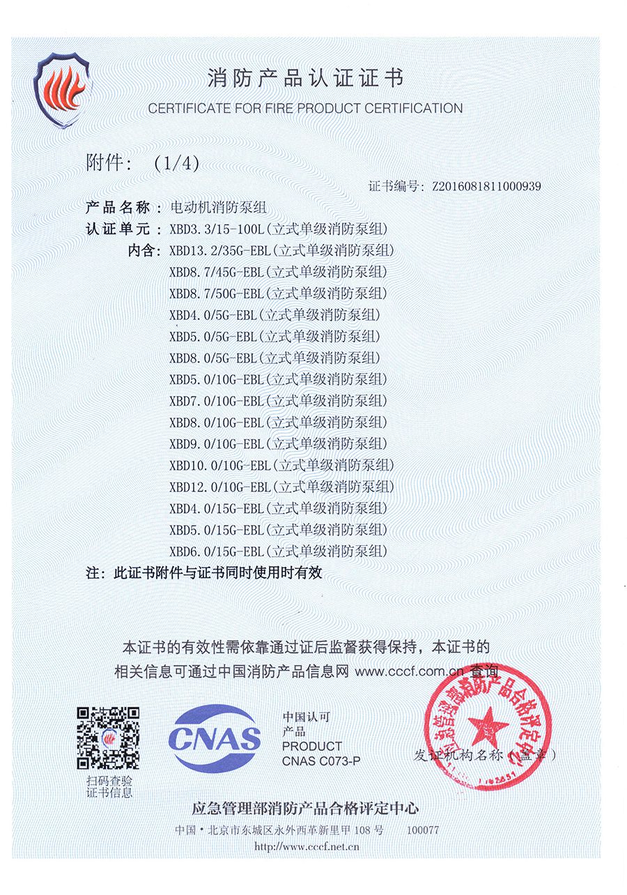 立式單級(jí)EBL-消防產(chǎn)品認(rèn)證證書(shū)