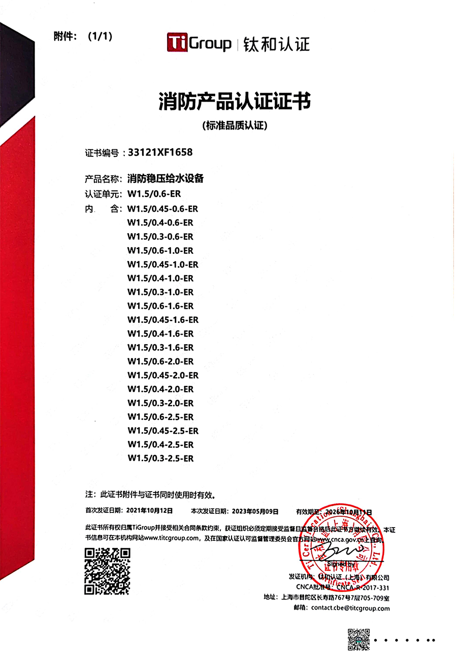 消防穩(wěn)壓給水設(shè)備-消防產(chǎn)品認證證書